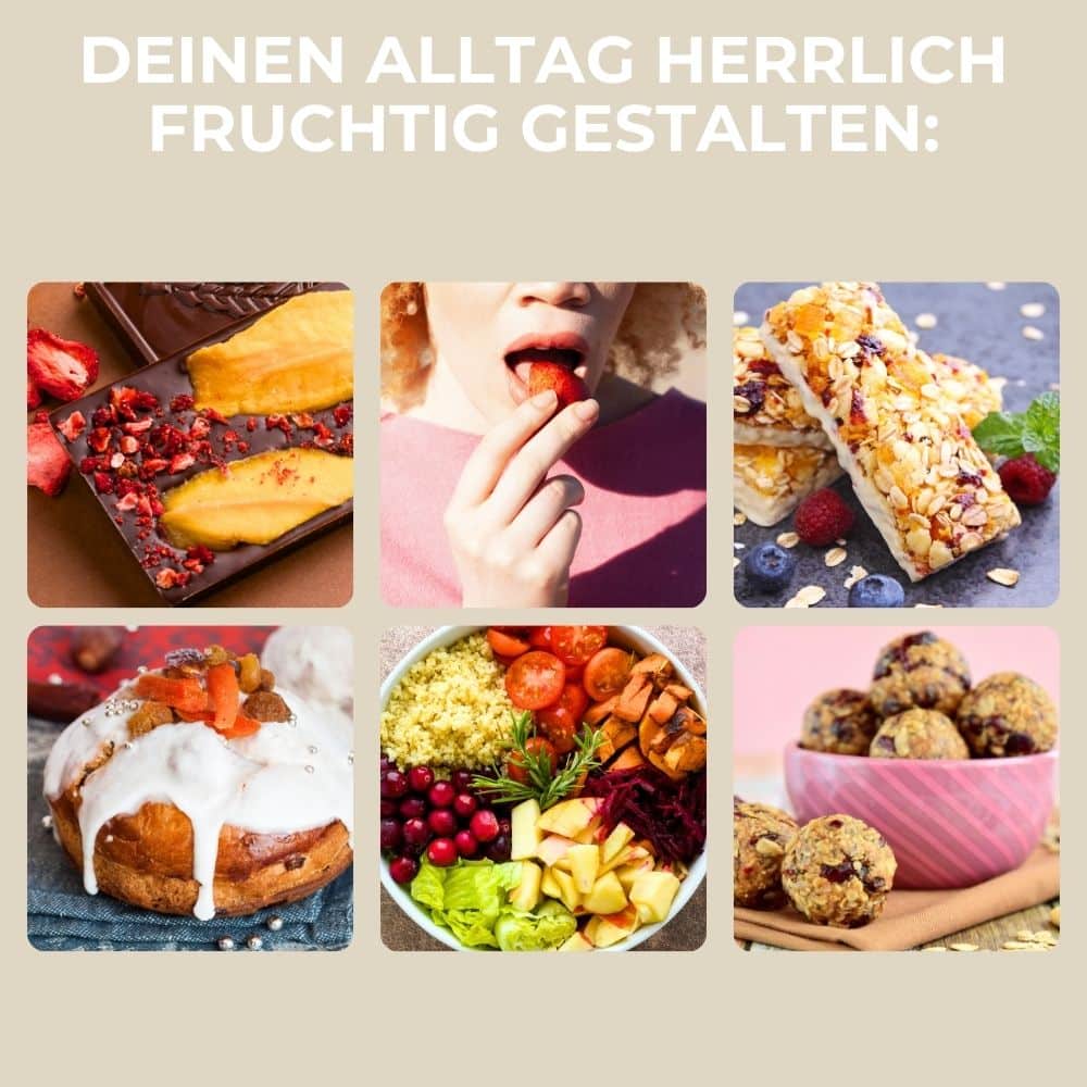 Durch das spezielle Gefriertrocknungsverfahren entziehen wir den Früchten sanft das Wasser, während Vitamine, Mineralstoffe und der natürliche Geschmack bestmöglich erhalten bleiben.