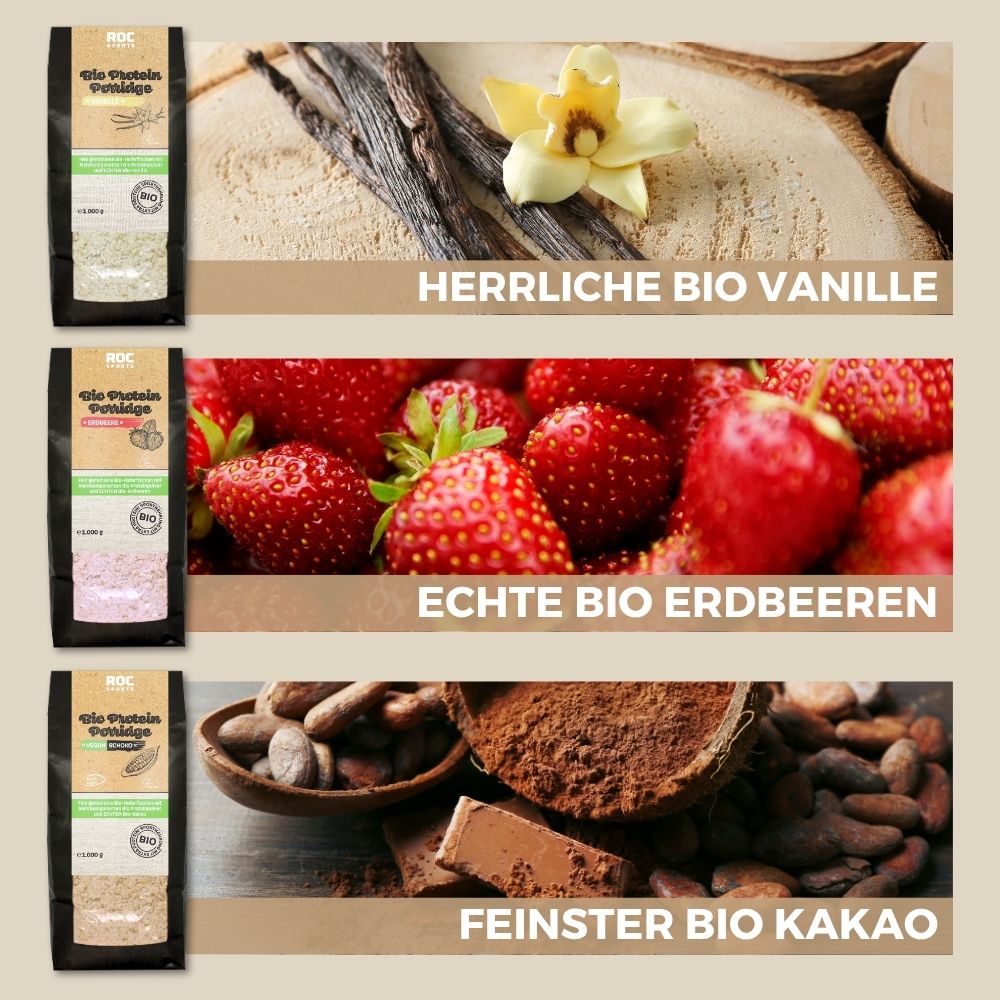 Haferflocken + Bio Protein = Protein Porridge – die Bio Power-Mahlzeit von ROC-Sports!