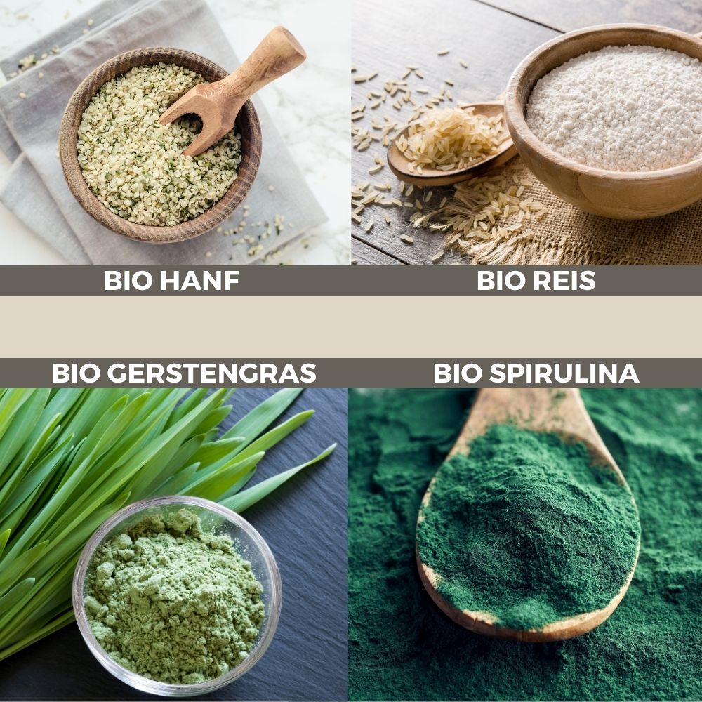 Durch die Kombination unterschiedlicher Proteinkomponenten (Hanf-Protein, Reis-Protein, Gerstengras, Spirulina), kann die klassische biologische Wertigkeit als auch beispielsweise die biologische Wertigkeit nach dem Chemical Score verbessert werden.
