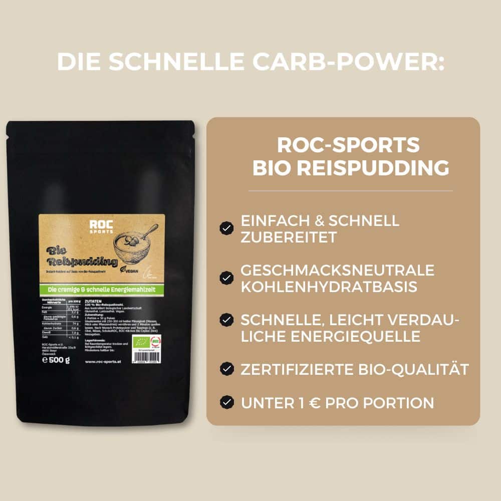Der ROC-Sports Bio Reispudding ist eine cremige, milde und besonders gut verträgliche Mahlzeit für aktive Tage, ruhige Momente und bewusste Ernährung.