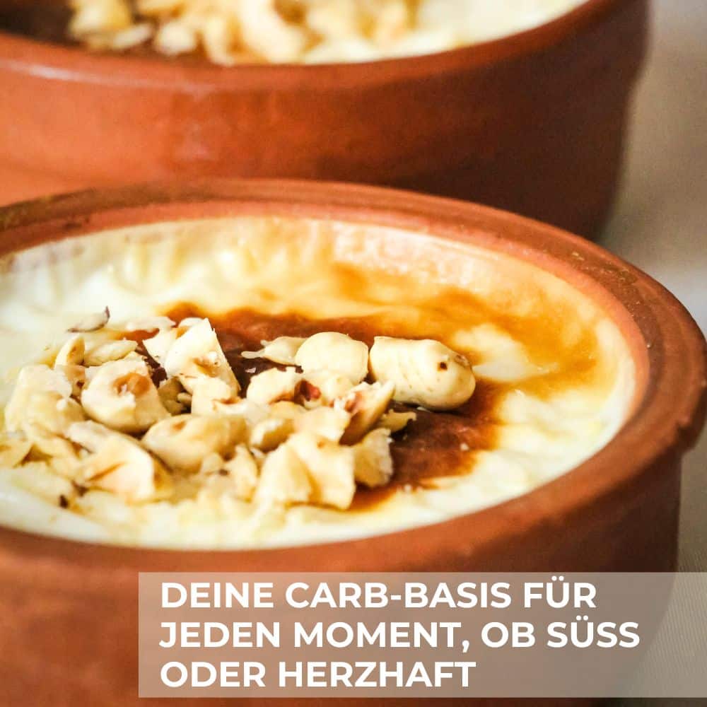 Vielseitig kombinierbar: Ob mit unserem BioProteinpulver, frischem Obst, unserem Bio Ceylon Zimt oder Nüssen, der neutrale Geschmack eignet sich ideal, um Deinen Reispudding nach Deinen Bedürfnissen zu gestalten.
